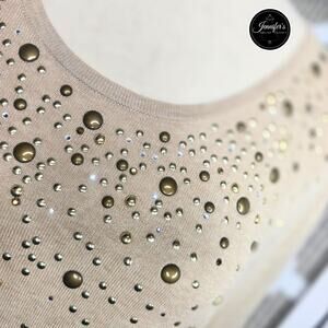 Adrienne Vittadini Tan Silk Blend Gold Studded Short Sleeve Sweater Size L
