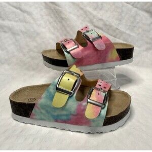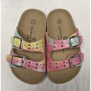 Adrienne Vittadini Toddler Girls Pink Blue Tie Dye Heart Slide Sandals Size 5c