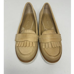 Adrienne Vittadini Tumult Fringe Platform Loafer Women's Leather Wedge SZ 6