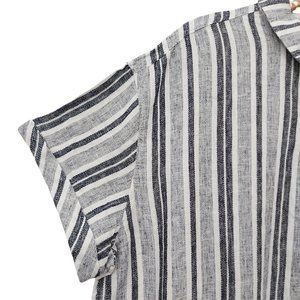 Adrienne Vittadini Tunic Dress Womens Gray XXL Linen Blend Button Up Striped