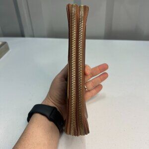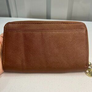 Adrienne Vittadini Wallet Zipper Camel Brown EUC Change Purse Clutch Charm