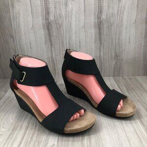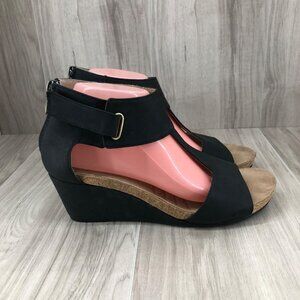 Adrienne Vittadini Wedge Sandals Womens 8.5M Trellis Black Back Zip Shoes