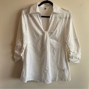 Adrienne Vittadini White Collared Babydoll Collared Blouse Shirred Sleeves Small