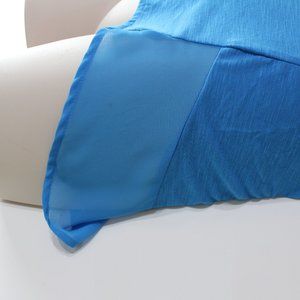 This top has a scoop neck with chiffon trim. The back of the blouse has a wide chiffon hem that is semi sheer. This top is so soft and comfy. It can be worn for dressy or casual. I think you'll love it!