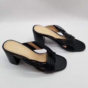 Adrienne Vittadini Women Annalee Heeled Sandals Size 6.5 Black Slide Strappy