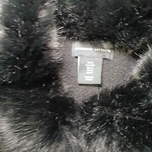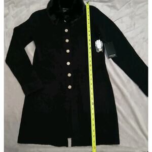 Adrienne Vittadini Women S Black Faux Fur Collar Long Knit Sweater Flower Button. Condition is New with tags.
