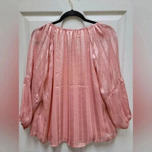 Adrienne Vittadini Women's Blouse w/Elastic Balloon Sleeves Sheer with and 2nd attached