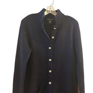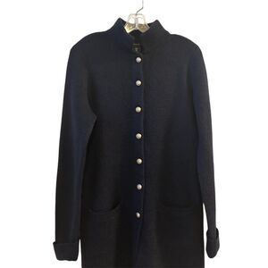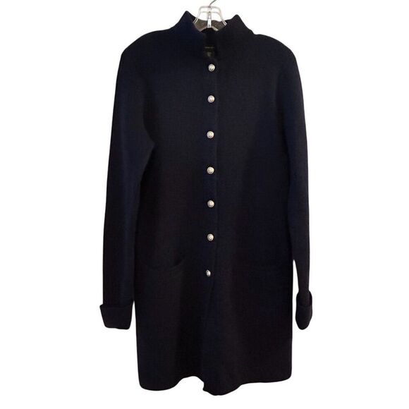 Adrienne Vittadini Women's Blue Long Jacket Lion Buttons Size L