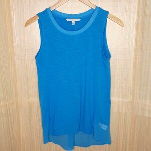 Adrienne Vittadini Women’s Blue Sleeveless Top With Sheer Trim Small.