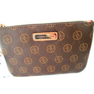 Adrienne Vittadini Women's Brown Signature Clutch Bag With Detachable Strap NWT