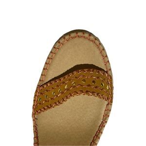 Charming from Adrienne Vittadini is an embellished wedge espadrille sandal with strap detailed with lacing and rivets.