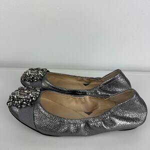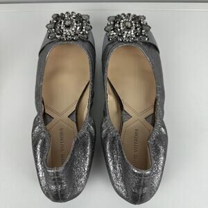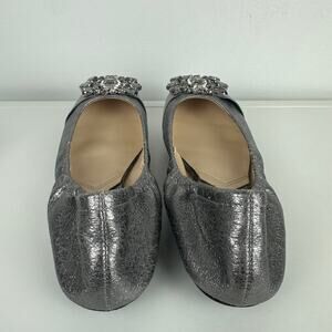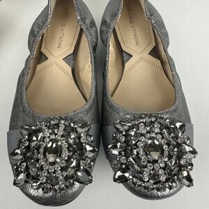 Adrienne Vittadini Womens Embellished Jewel Bow Metallic Grey Flats Shoes 7M