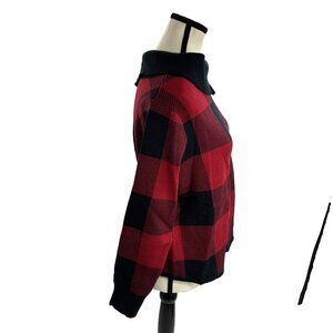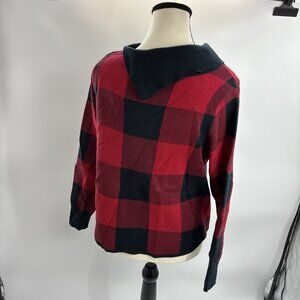 Adrienne Vittadini Womens L Red Black Buffalo Plaid Sweater Button Neck Pullover