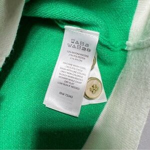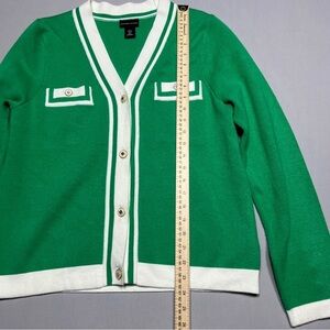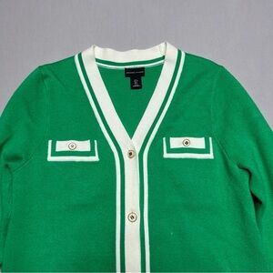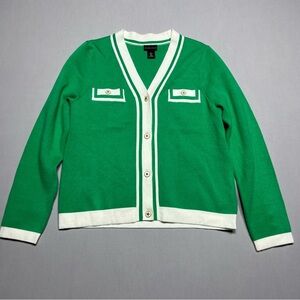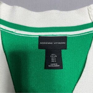 Adrienne Vittadini Womens Large Cardigan Sweater Green White Long Sleeve V-Neck