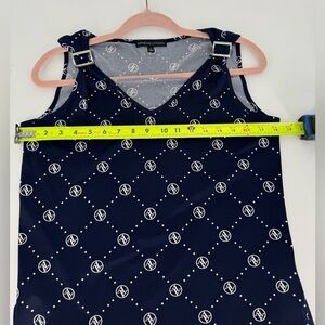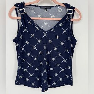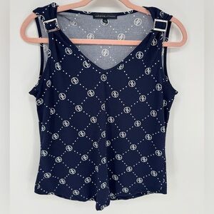 Adrienne Vittadini Women's Monogram Sleeveless Buckle Blouse Top
