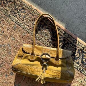 Adrienne Vittadini Women's Purse Yellow/Tan Suede Tortoise Shell Vintage Satchel