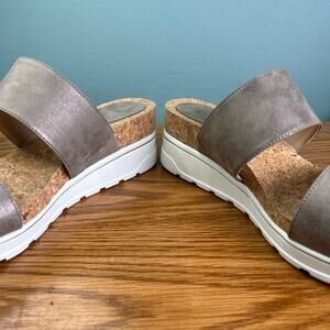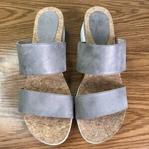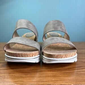 Adrienne Vittadini Womens Sandals 9.5 Cork Gray White Platform Slip-On Comfort