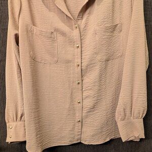 Adrienne Vittadini Womens Size XL Long Sleeve Beige Button Front Blouse