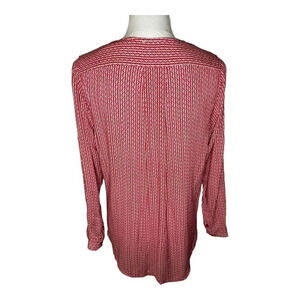 Adrienne Vittadini Women’s Small Red Geometric Print V-Neck Front Wrap Top