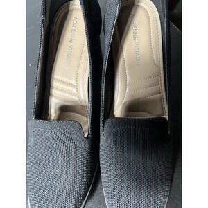Adrienne Vittadini Women's Square Toe Knitted Black Block Heel Pumps Size 8.0M