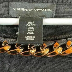 Adrienne Vittadini Beautiful woman’s black sweater with gold chain trim. The sweater is an excellent condition. 70% rayon, 38% polyester.