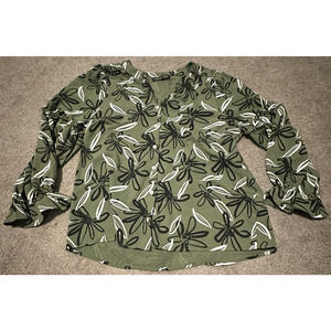 Adrienne Vittadini XL Blouse V-Neck Long Sleeve Ruffle Hem Button Front Green
