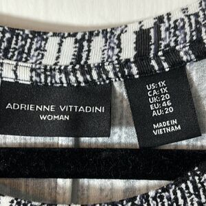 Adrienne Vittadini abstract print A-line crew neck short sleeve stretch navy & white dress 1X.