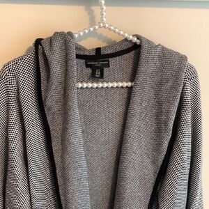 Adrienne Vittadini black and white open cardigan with a hood size 1x
