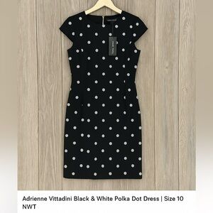 Adrienne Vittadini black and white polka dot dress Size 10. NWT