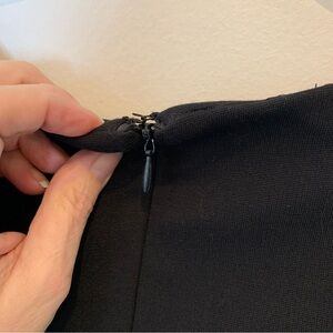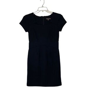Adrienne Vittadini little black cocktail dress, capped sleeve, dart pleating, beautiful neckline. Zipper in back. Polyester, rayon and spandex blend material. Size 6P. Dry clean only. Perfect for that special event!