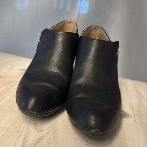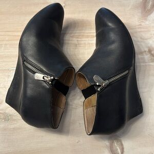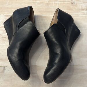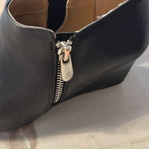 Adrienne Vittadini booties with elastic at interior for easy wear. Vegan leather. Preloved with wear left! Light wear on toes and soles/heels reflected in di price.