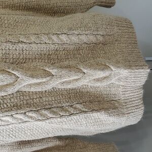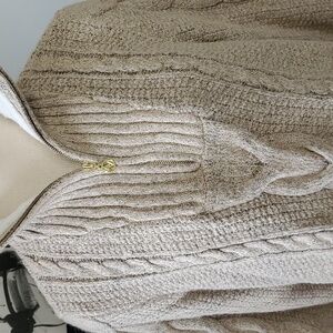 Adrienne Vittadini cable knit sweater. XXL, 10" Henley zipper tan/gray Excellent