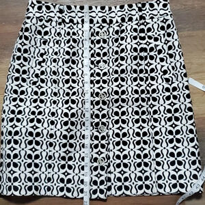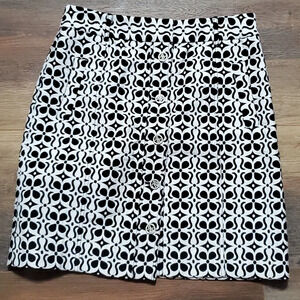Adrienne Vittadini graphic black white front button pencil skirt euc