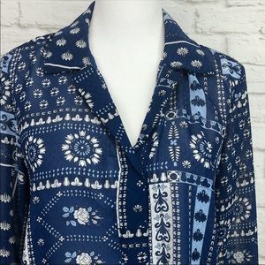 Adrienne Vittadini long sleeve collared V neck blouse