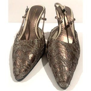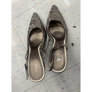 Adrienne Vittadini silver lace over dark leather heels size 8M