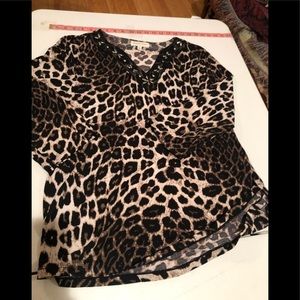 Adrienne Vittadini size XL leopard print V-neck loose cut w/ Rhinestone details