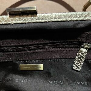 - Signature brown poly lining and suede enforcement around the interior zippered pocket