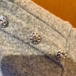 Adrienne Vittadini soft gray sweater mock neck ruffle cap sleeve with crystal buttons womens size M