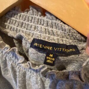 Adrienne Vittadini soft gray sweater mock neck ruffle cap sleeve womens size M