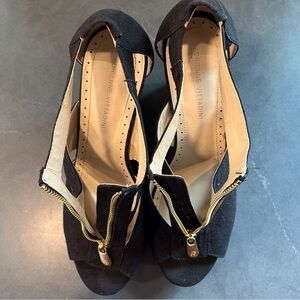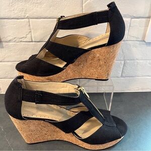 Adrienne Vittadini sz 11 Cresta black fabric platform wedge sandals