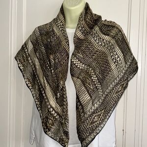 Adrienne Vittadini very large brown, cream & tan multi patterned silk scarf