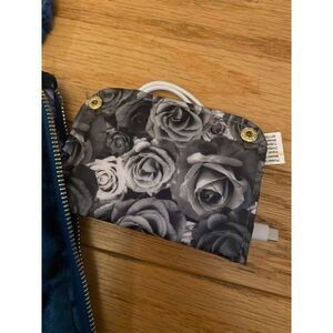 Adrienne Vittadini women's blue/green velvet wristlet with USB charging insert