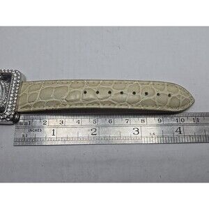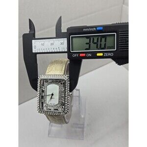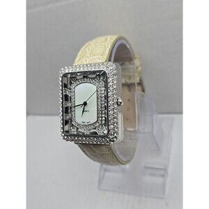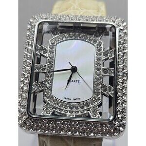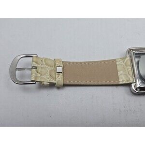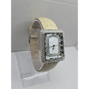 Adrienne Womens Rhinestone Open Square Watch Cream Croc Leather New Battery