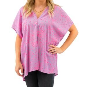 Adrienne Women's Small Purple and Pink Cheetah V-Neck Short Sleeve Blouse
