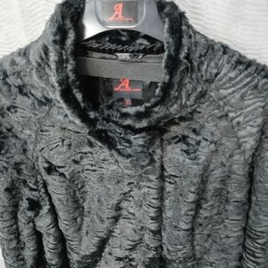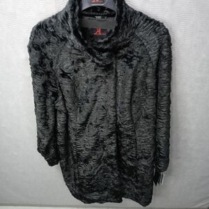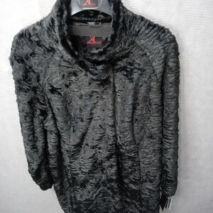 Adrienne landau women's long Faux Fur Persian Lamb full zip Jacket Black fully lined plus sz 2X. Pit-p 25". Length 44". new with tags