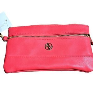 Adrienne vittadini two zip pocket wristlet coral smooth new