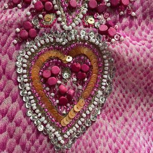 Adrienne Landau Women’s Large Pink and White Snake Skin Print 100% Silk Tunic Top with beading…excellent condition! Like new worn once!