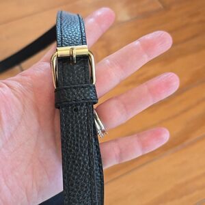 Chic black canvas and leather shoulder bag with elegant design. Features sturdy handles and a stylish logo charm. Perfect for daily use. Excellent Condition. Clean. Minor scuffs on the hardware from light use but nothing noticeable.