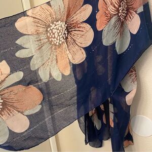 Adrienne Vittadini Lightweight semi sheer Duster Kimono blue large floral OS