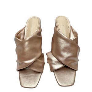 Adrienne Vittadini Mules Size 6 Rose Gold Satin Finish Open Toe Block Heel